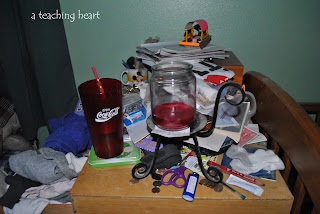 Everyone also mentioned that bedrooms were very out of control.... they all sort of look like a tornado has ripped through them and we are waiting for the FEMA management team to show up and do the work. I told them that we are going back to Zones in the rooms....... even me. ( my room is the tornado headquarters!) The mention of Zones precipitated large sighs, and great amounts of Eye Rolling.... but they know we need a simple way to get back on top of our house.